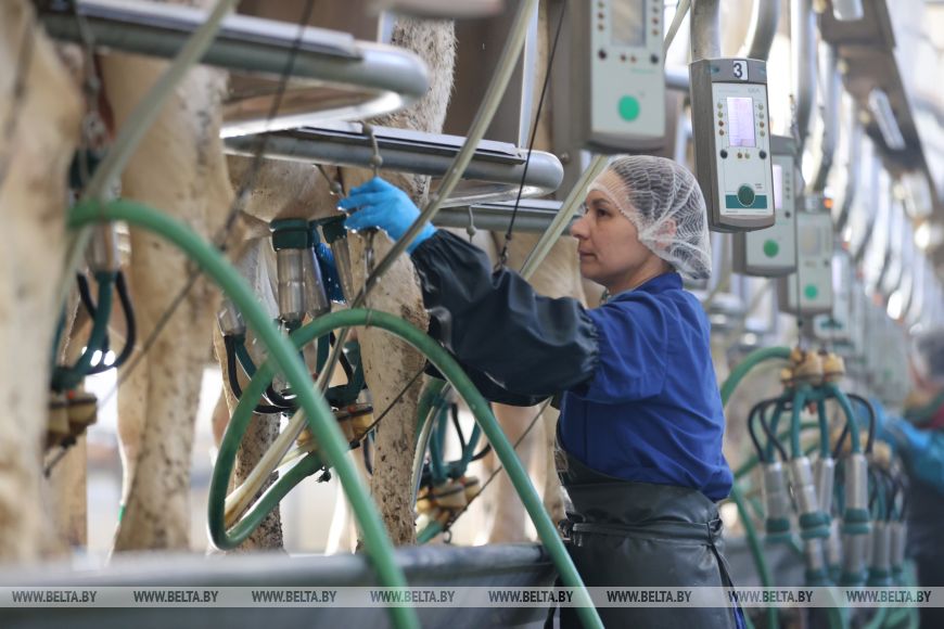 Главный зоотехник СПК «Агрокомбинат «Снов» Константин Бондарь отметил, что предприятие находится в десятке лидеров в Беларуси по молочному производству. «Среднегодовой удой на корову составляет больше 10 тыс. кг молока. И все благодаря содержанию, уходу и кормлению. Корма у нас качественные, с высокой питательностью, с высокими показателями по белку. Все эти корма, которые мы заготавливаем, исследуются в лаборатории. И потом на основании исследований, анализов кормов составляется рацион кормления», — добавил он.