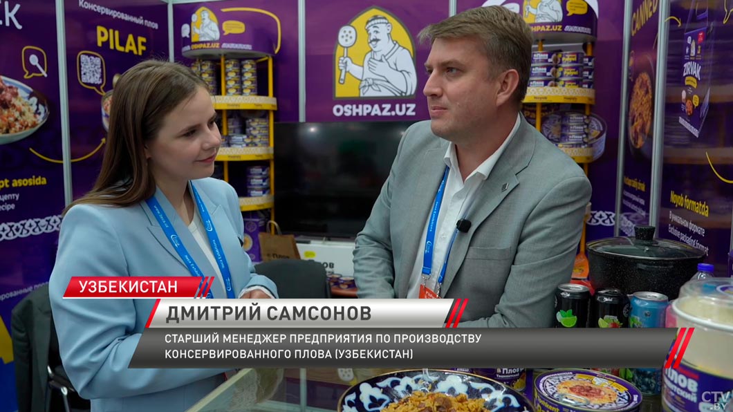 Белорусские производители представляют мясо-молочную продукцию, сыры, соусы и соки — всего более двух десятков предприятий и филиалов. Узбекистан занимает четвертое место среди импортеров белорусской продукции, и стороны нацелены укрепить этот результат.