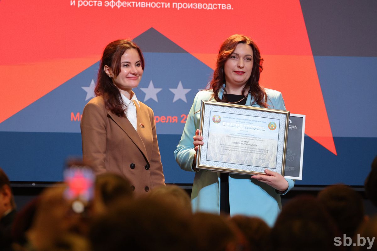 Торжественным моментом форума стало вручение наград от Министерства сельского хозяйства и продовольствия. Например, благодарности ведомства за многолетнюю добросовестную работу, достижение высоких показателей и значительный личный вклад в развитие агропромышленного комплекса удостоена начальник отдела продаж Могилевского мясокомбината Татьяна Загурская. Получая награду, она подчеркнула: успех — это всегда командная история.