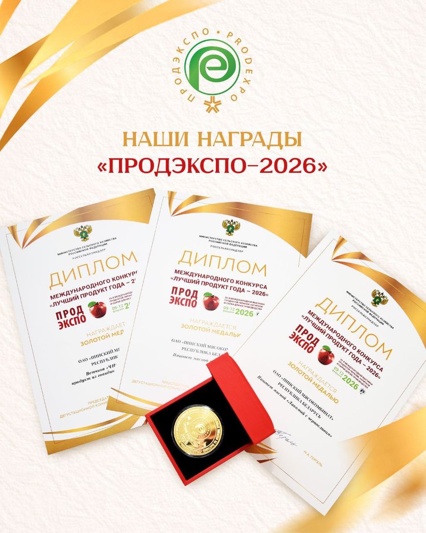 В рамках 33-й международной выставки продуктов питания, напитков и сырья для их производства «ПРОДЭКСПО 2026» в Российской Федерации в конкурсе «Лучший продукт года-2026» награждены дипломами и золотой медалью: