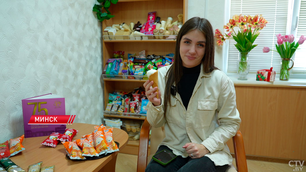 Идею предложили российские партнеры — реализовали задумку на столичном хладокомбинате № 2. Над созданием продукта с мая 2025 года работала команда технологов. Сотни экспериментов, тест разных сочетаний и вкусов. Конечный продукт получился смелым: в основе — классический пломбир, а вместо сахарного рожка — хрустящая вафля с луком и картофелем. Ее изготавливают на гродненском предприятии.