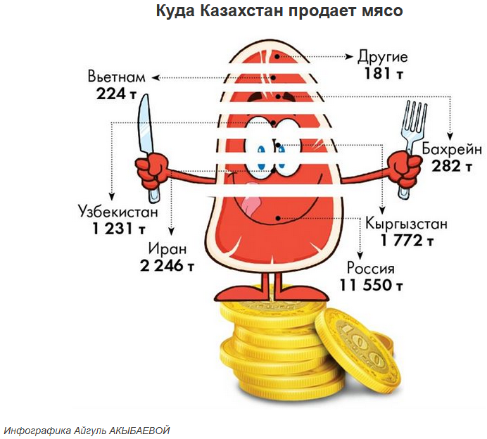 Рынок Казахстана переполнен продукцией партнеров по ЕАЭС: большую часть мясного ассортимента составляют колбасы, деликатесы и консервы, полуфабрикаты из России и Беларуси.